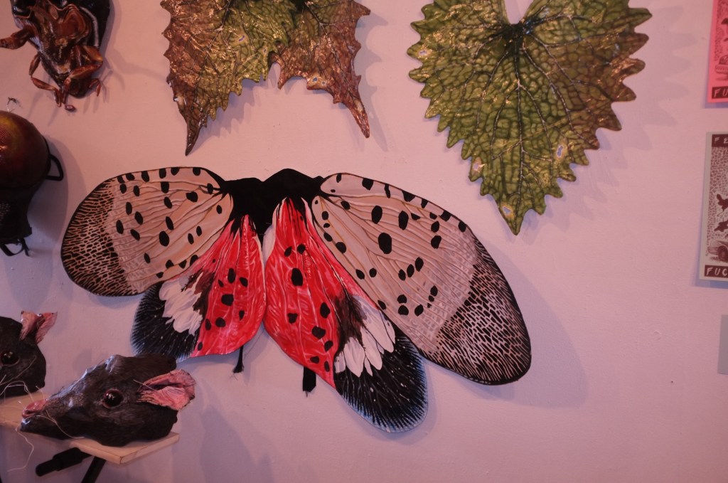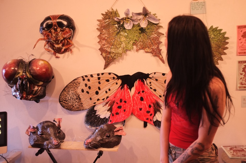Reed is an artist and organizer whose work is a striking exploration of our relationship with invasive species and the ways the term “invasive” is sociopolitically constructed. They invite us to see often reviled creatures as wise teachers and survivors who make home in the echo of state sanctioned extermination.