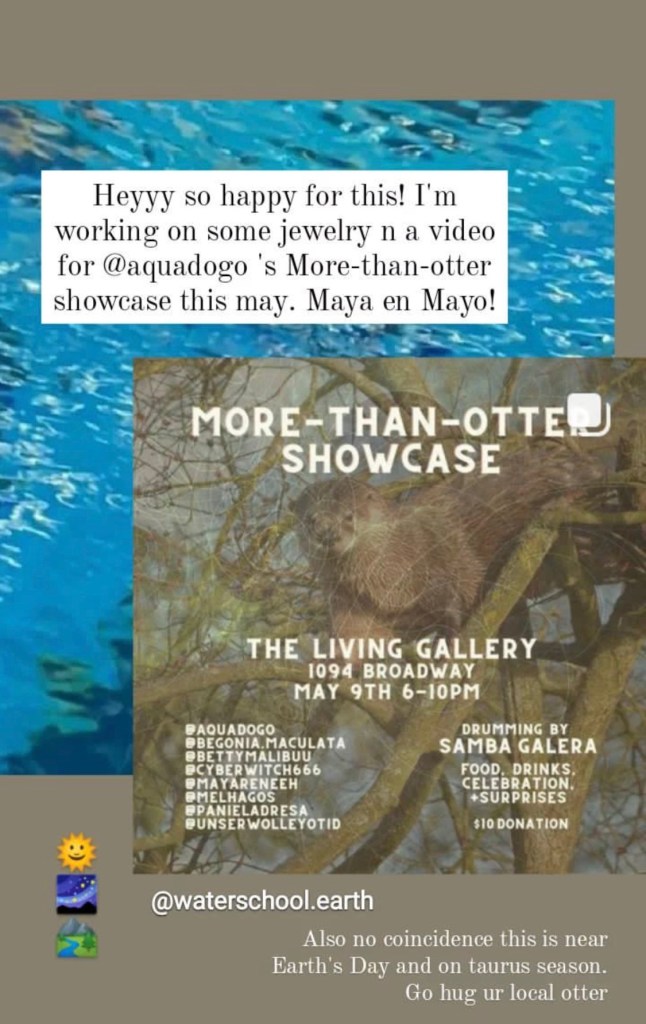 Maya is a semi-urban river otter and artist who escaped human captivity to make music. The sonic creations that ki facilitates are inspired and dedicated to otters. Their guiding principles are perreo afectivo and multispecies kinship. Ki is a “noisy otter” based in Brooklyn, and Mexico City, but you might also spot them in LA or San Juan.