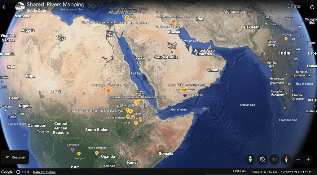 Mapping the river mouths and heads of select streams around the world, as well as landmarking important features in their water basins in our quest to connect and understand how the water shapes the land around us, and vice versa.